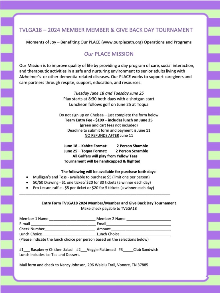 Tellico Village Ladies' Golf Association – 18 Hole League