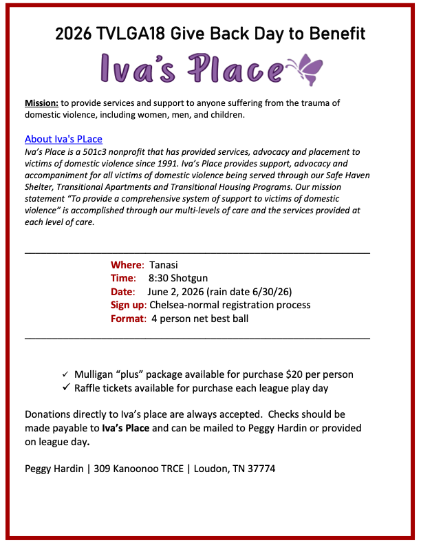 Tellico Village Ladies' Golf Association – 18 Hole League