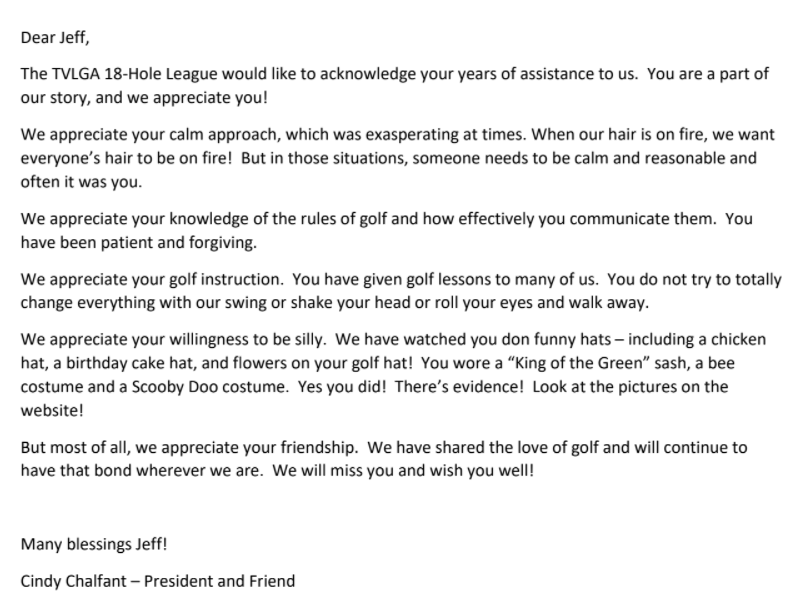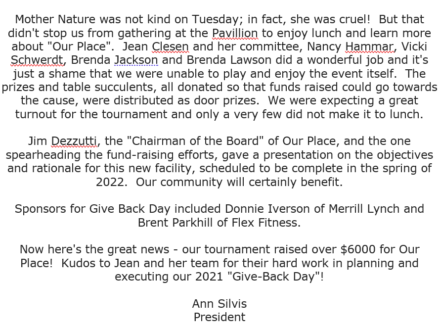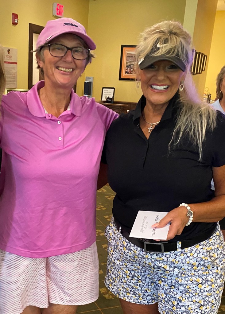 Following our last play day of 2019, we planted a memorial plaque and 3 encore Azaleas (2 reds and a white) to honor our dear friend and fellow golfer, Carol Padgett. This memorial is located in the garden to the left of the cart path between Toqua holes #2 and #3.